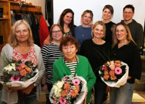 Abbildung von links nach rechts: Dr. Sabrina Auerbach (Ehrenvorsitzende), Anja Greilinger-Winter (Schatzmeisterin), Elfriede Werner (Ehrenvorsitzende), Christine Ehling (Tierpflege), Julia Häuser (Veranstaltungen), Andrea Claßen (2. Vorsitzende), Alena Klopfer (Öffentlichkeitsarbeit), Caroline Hammer (1. Vorsitzende), Benno Krause (Baumeister).